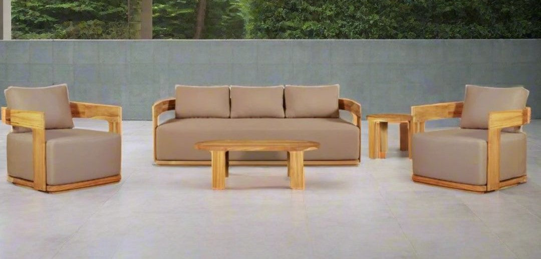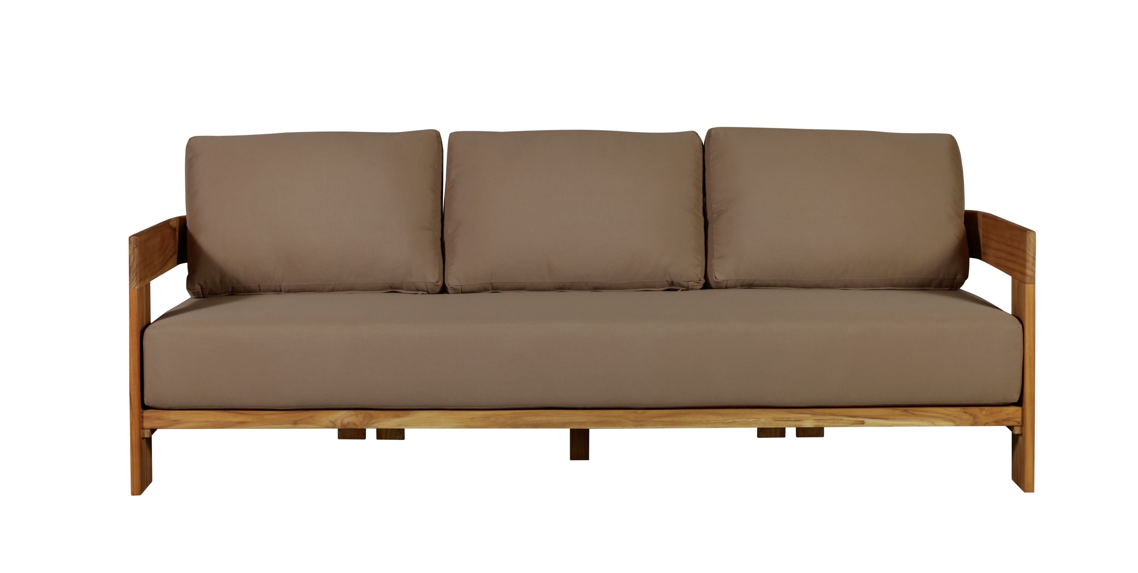 Paradiso Outdoor Solid Teak Wood Sofa - Light Brown Fabric
